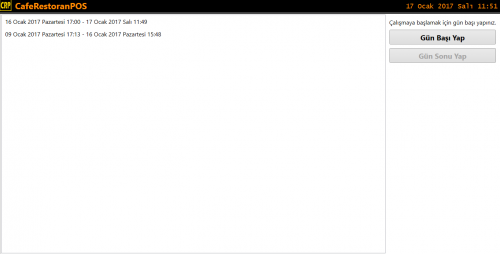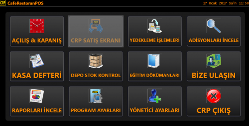 Nasıl hergün işyerinizi açıyor ve güne başlıyorsanız iseniz CRP içinde aynı işlemi yapmanız gerekli. Eğer bir gün önce Kapanış-GünSonu işlemini yapmışsanız ekranınız aşağıdaki gibi olacaktır. CRP SATIŞ EKRANI tıklanamaz durumdadır. Çünkü Açılış-Günbaşı işlemi yapmadınız.