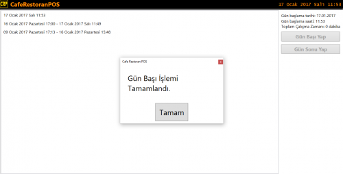 Bu bildirime de TAMAM demeniz sonrasında AÇILIŞ İŞLEMİni yapmış oluyorsunuz ve artık CRP SATIŞ EKRANI na girebilirsiniz.